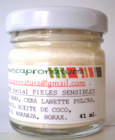 La Crema Contorno de Ojos ha sido elaborada a base de Aceite de Girasol Ecológico con una base de agua de Té Verde. Además, le he añadido cafeína descongestionante y elastina, todo ello en proporciones y medidas muy precisas. En la parte final, cuando la crema comienza a cuajar, he incluido el Aceite Esencial de Naranja, que por su caracter revitalizador, realza la mirada, en combinación con la descongestionante y ya citada "cafeína". Por su parte, la Elastina se usa como princio activo muy potente en cuanto a que ayuda a la regeneración celular de la piel. Esta crema es densa y duradera, por lo que puede usarse como agente antiarrugas y, sobre todo, como descogestionante matinal